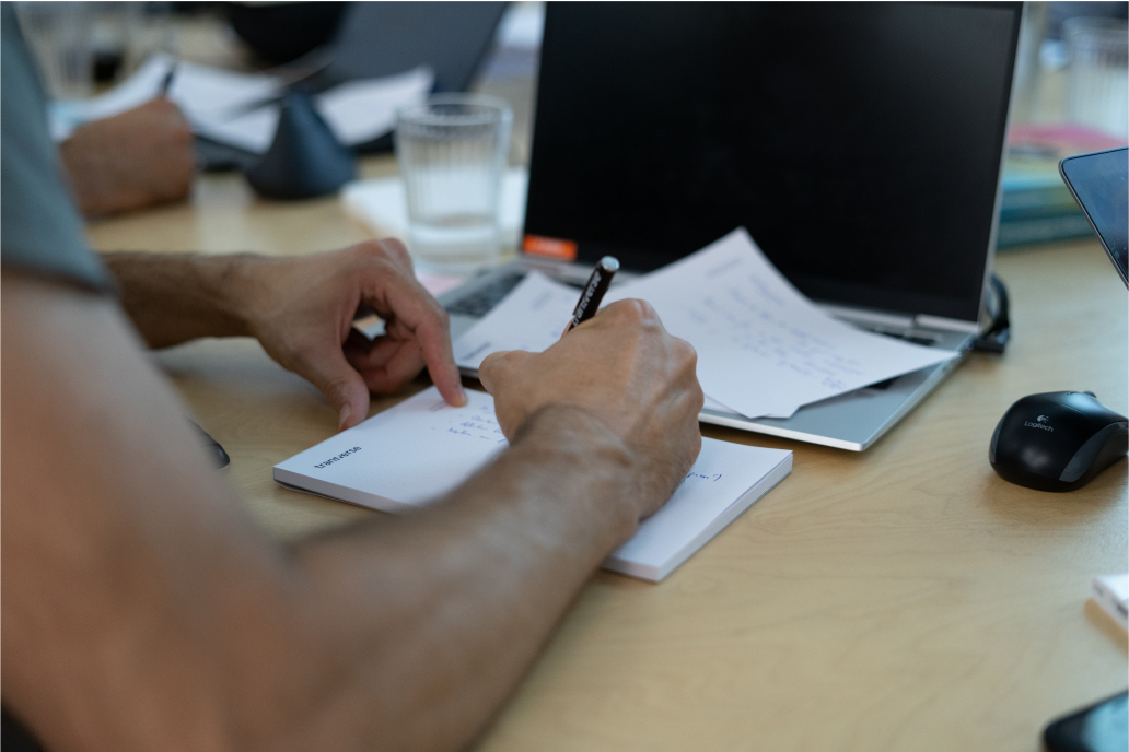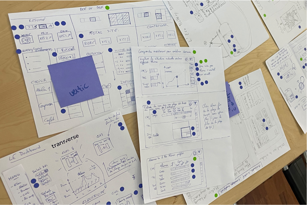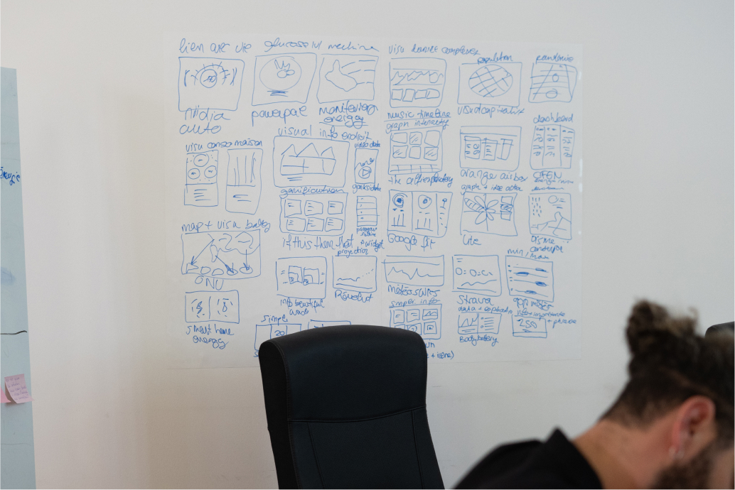 Pour structurer le projet et valider les premières hypothèses, un Design Sprint de cinq jours a été organisé avec l’équipe de save&sustain et des experts externes. Cette phase a permis d’identifier les points critiques, d’explorer différentes solutions et de tester les idées directement avec les utilisateur·trices cibles.