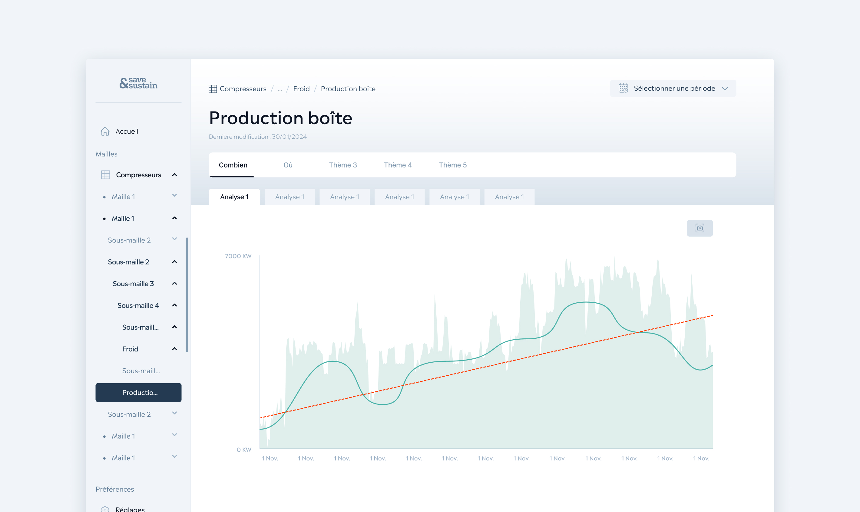 save&sustain est une plateforme SaaS qui aide les entreprises à surveiller, analyser et optimiser leur consommation énergétique. Grâce à des capteurs intelligents, facilement déplaçables, la solution fournit une vision détaillée des usages et permet d’identifier les sources de gaspillage, tout en proposant des stratégies pour améliorer l’efficacité énergétique.