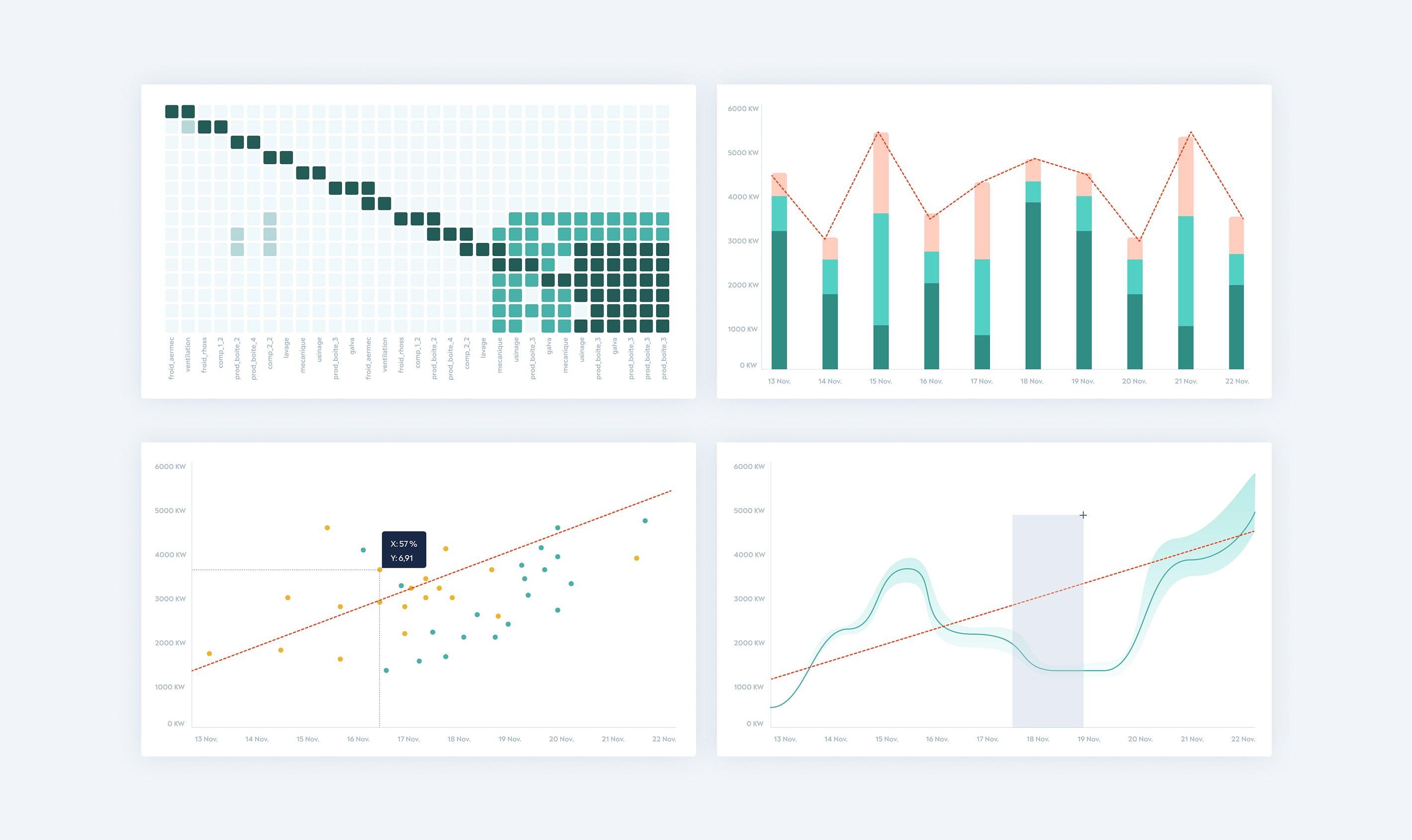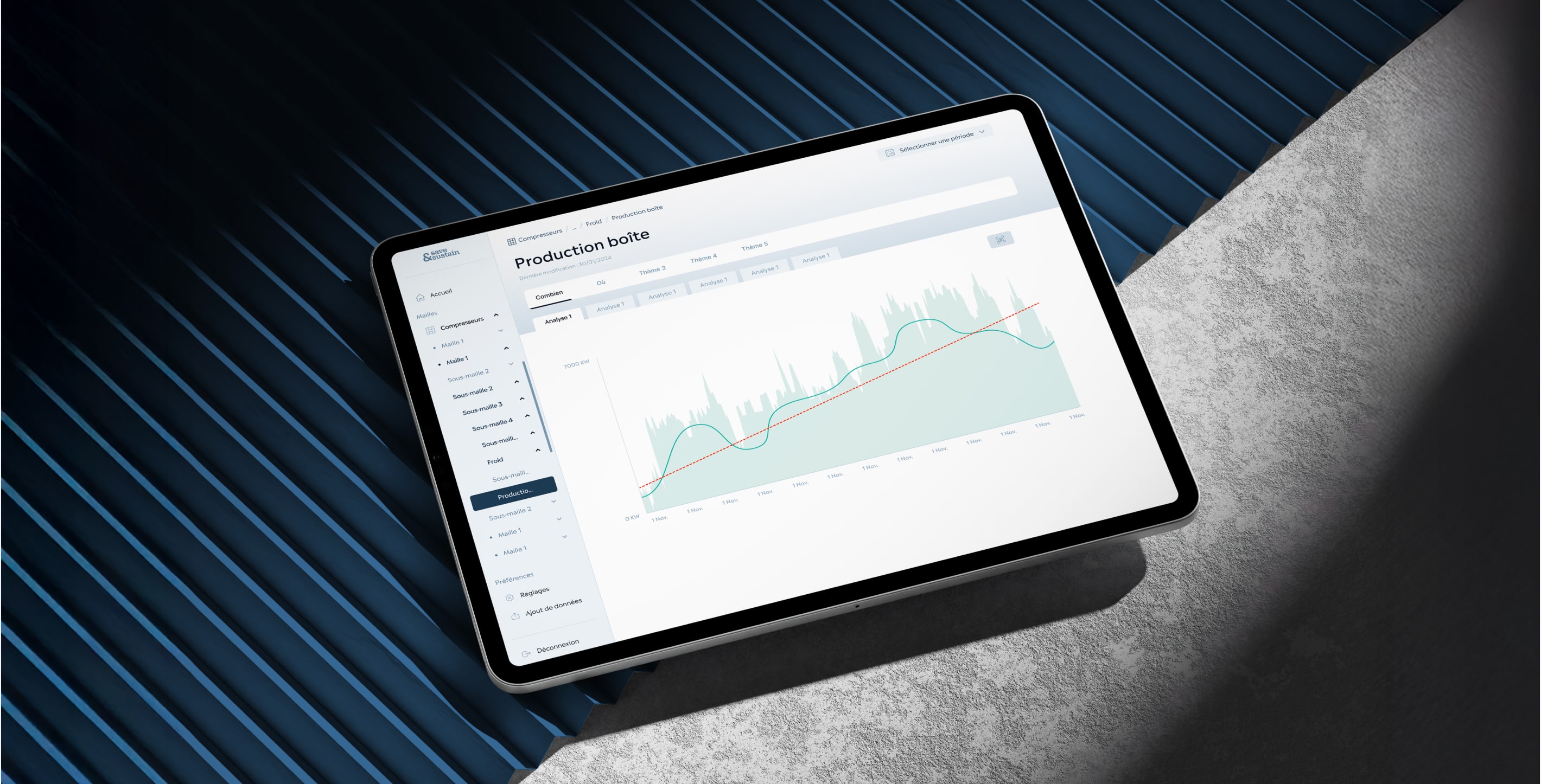 L’interface adopte une esthétique minimaliste, mettant en avant les indicateurs clés de performance. Les graphiques et visualisations permettent une lecture simplifiée des données, facilitant la compréhension des tendances de consommation et la prise de décisions éclairées pour améliorer l’efficacité énergétique.