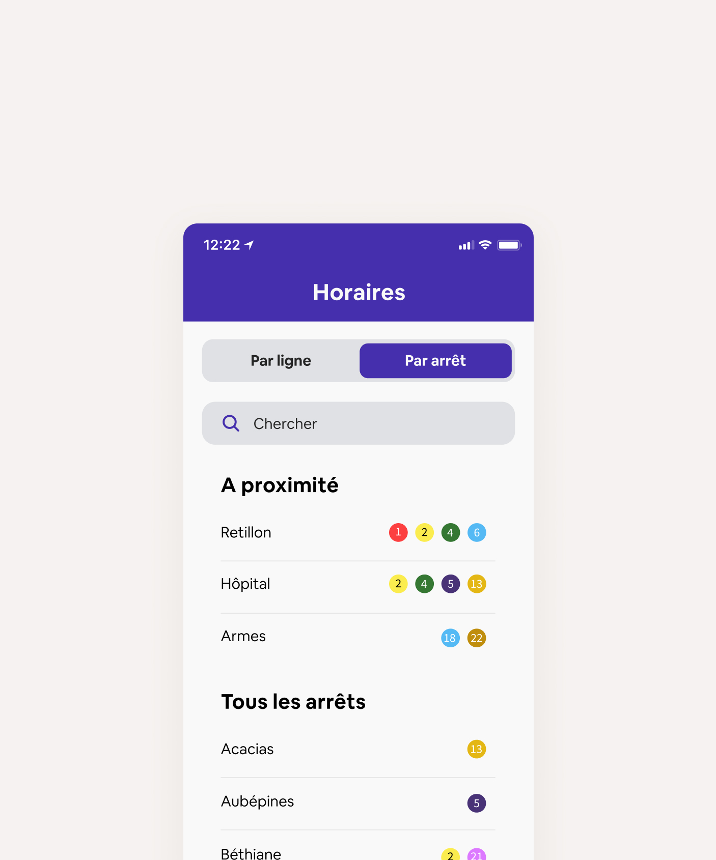 La solution proposée intègre un tableau de bord centré sur les besoins essentiels : visualisation immédiate des arrêts à proximité et des prochains départs, gestion d’itinéraires favoris et achat simplifié de billets.