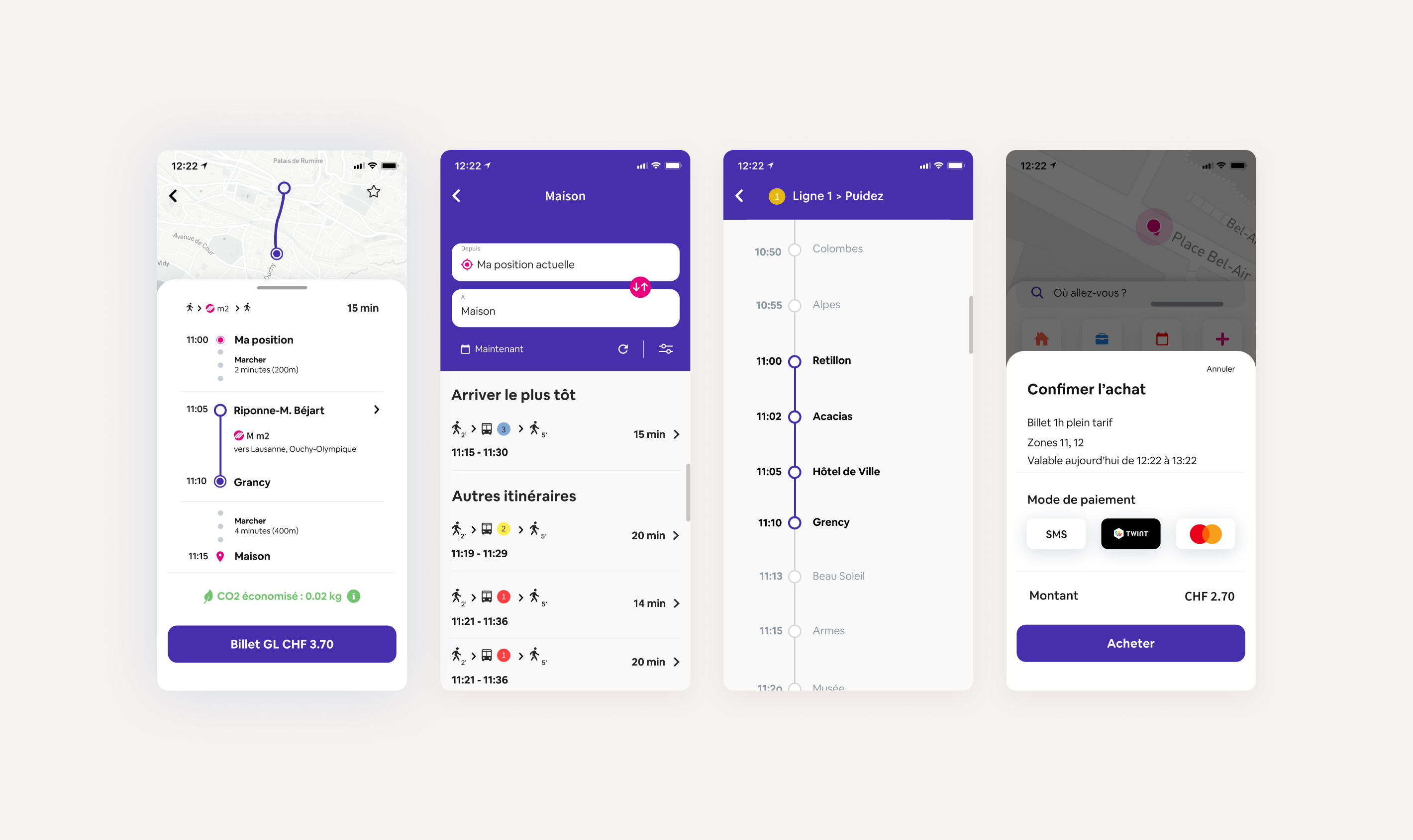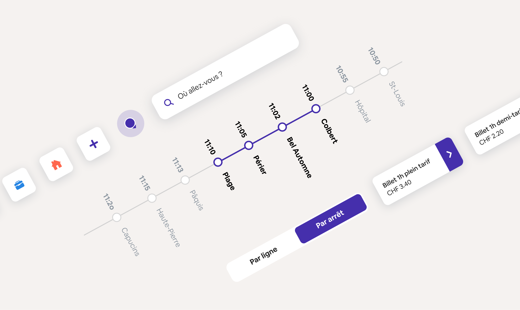 En Suisse, chaque grande ville propose sa propre application de transports publics, souvent dense et complexe. Ce type d’outil, destiné à un public large allant des pendulaires aux touristes, offre un terrain riche pour la recherche utilisateur·trice.
